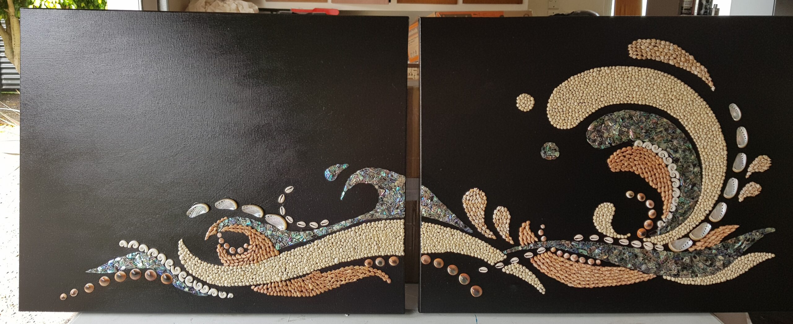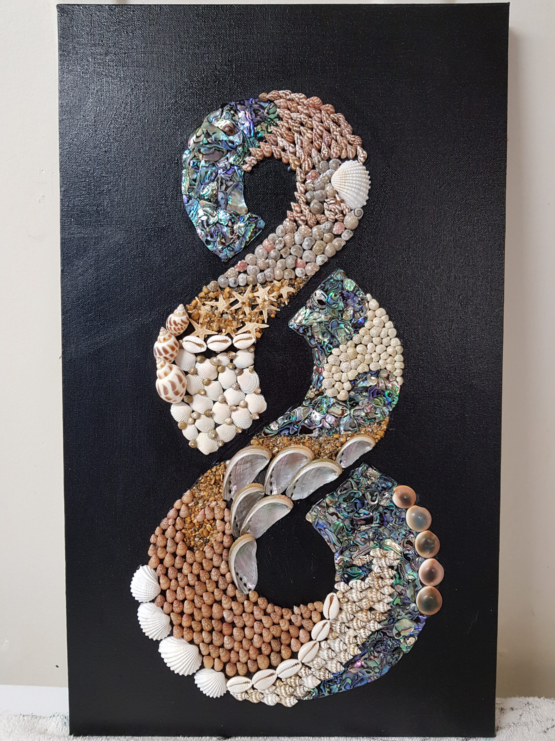 Donna Lipinski’s work is a celebration of New Zealand’s coastal beauty, expressed through two distinct and highly original styles. Her signature Kiwiana Shell artworks are created from tiny, hand-placed shells on canvas, forming uniquely Aotearoa-inspired designs, koru, manta rays, fishhooks and waves, each shimmering with natural texture and detail. No two pieces are ever the same.