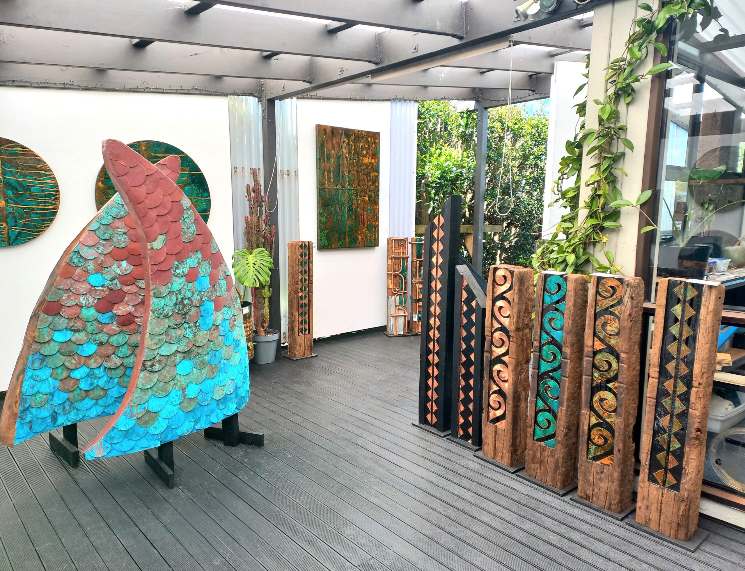 Nestled in the tranquil suburb of Matua, the Isaac Weston Art Gallery offers visitors a uniquely immersive experience. Inside, striking copper artworks fill the space, each piece carefully curated to showcase the beauty and versatility of reclaimed metal.