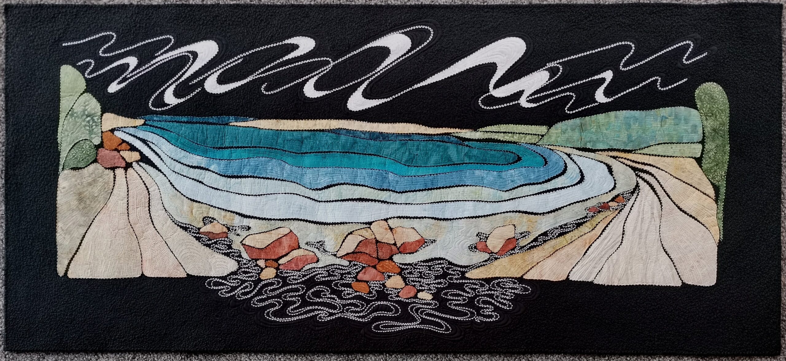 Lois Parish Evans is an award-winning mixed media textile artist whose work explores the extraordinary in the everyday. Influenced by her wanderings through bush, beach, and urban environments, Lois translates these experiences into richly layered textile compositions. Her style, representational abstraction—uses line, colour, shape, and texture to convey an emotional and personal lens on the natural world.