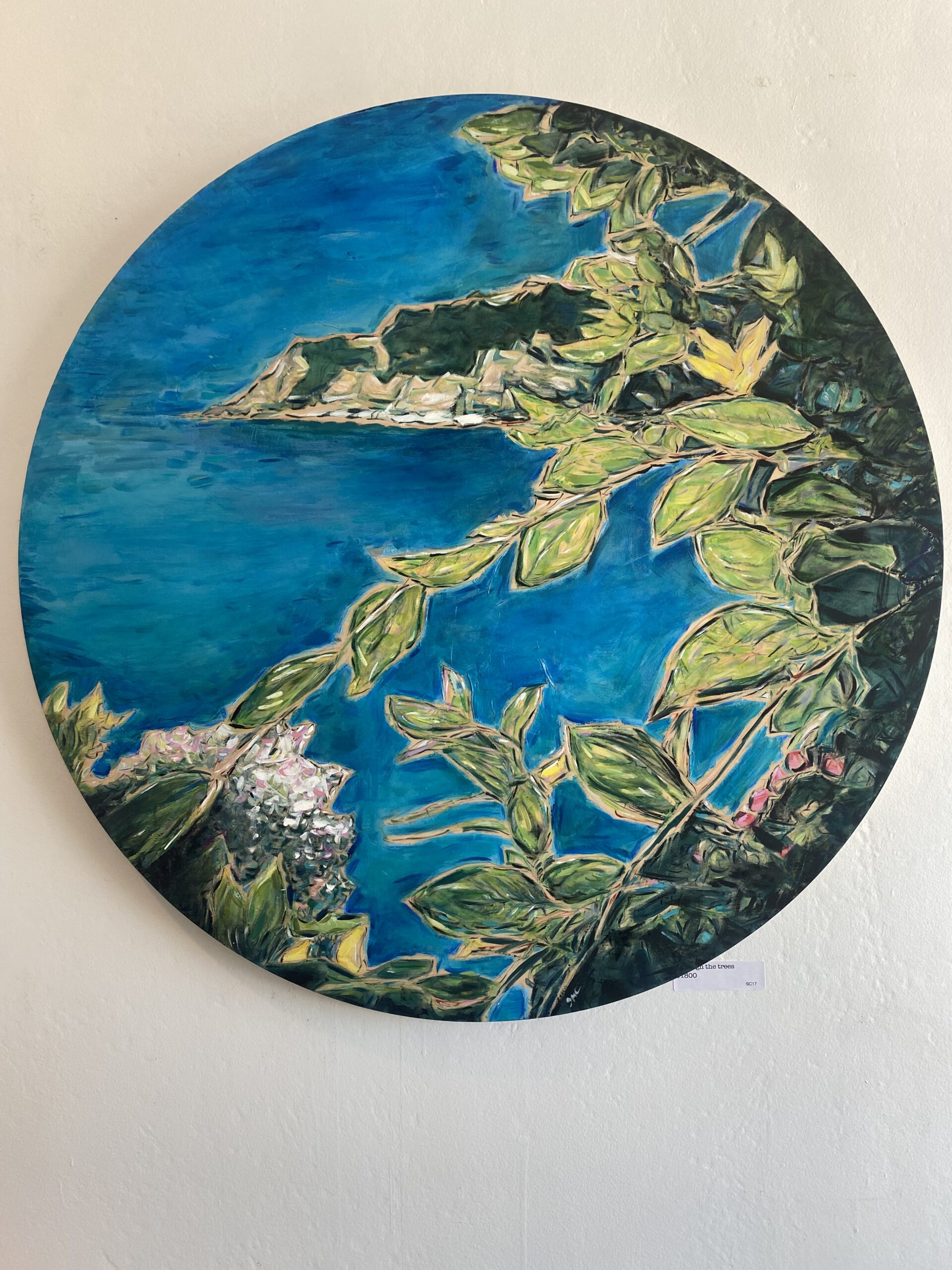 Her seascapes often begin with sketches and photographs of the area, evolving through playful experimentation and bold tools, big brushes, squeegees, and anything else that gets the job done. Stella also works in printmaking and enjoys exploring the intersection between painting and texture.