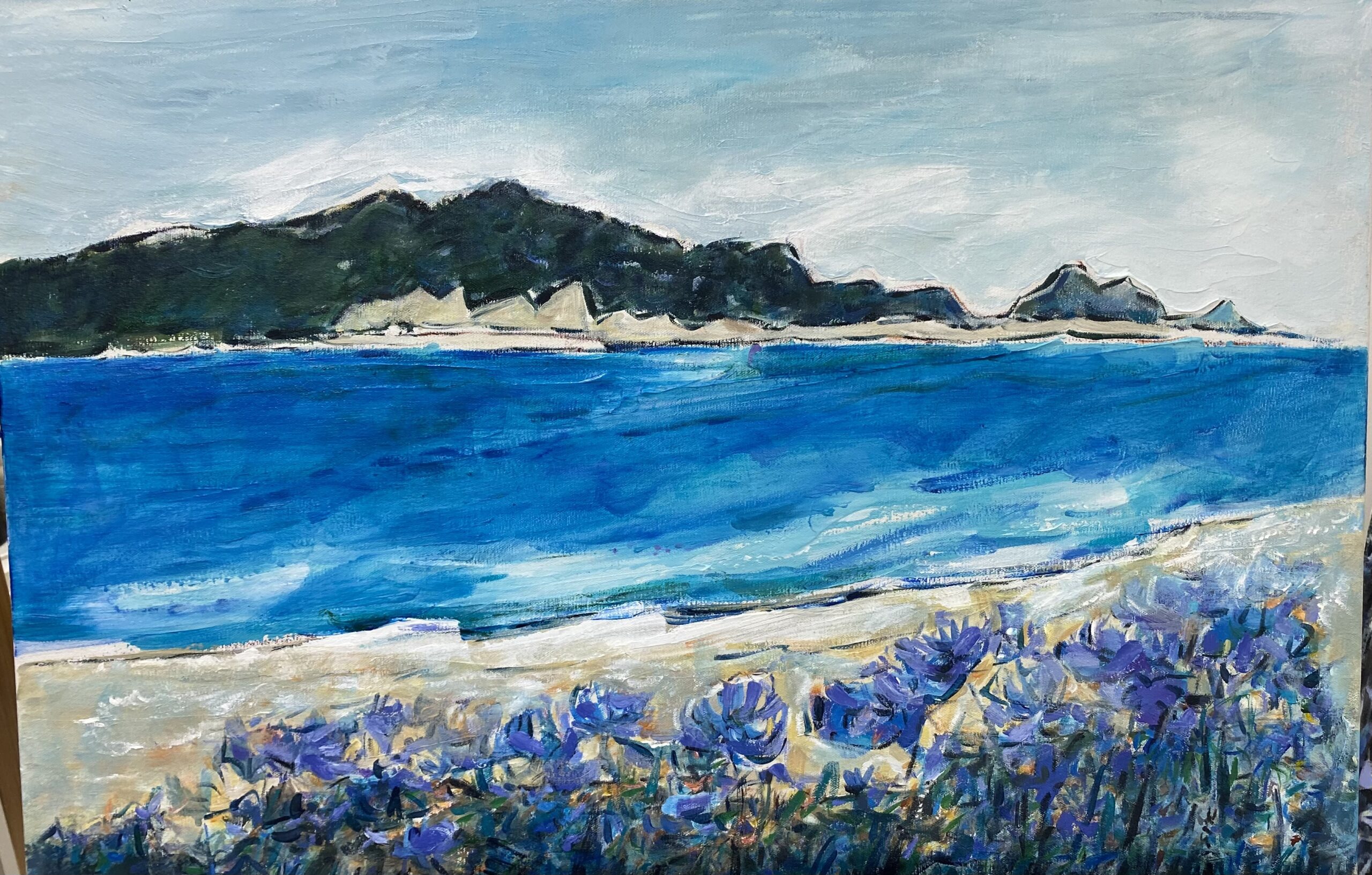 Stella Clark is a Mount Maunganui-based artist known for her large-scale mixed media works on wood and canvas. Her art explores both the local landscape and abstract ideas, using texture, colour, and scale to evoke a deep sense of place.